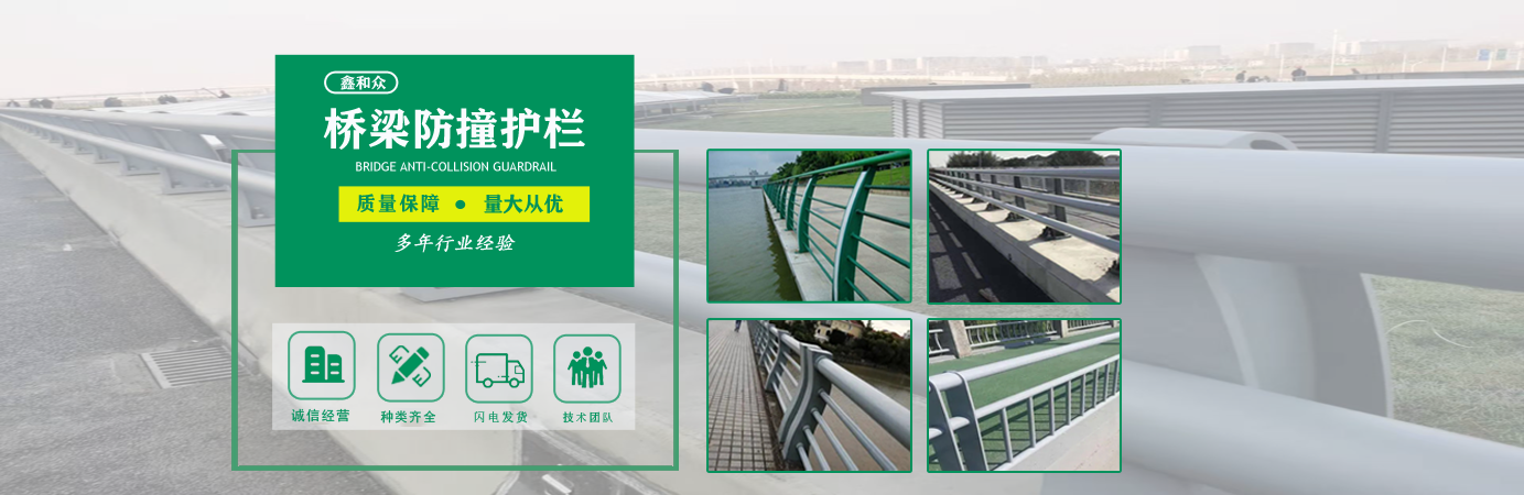 山東鑫和眾金屬制品有限公司主要產品有防撞護欄,橋梁護欄,道路護欄,河道護欄,不銹鋼護欄等護欄。提供設計方案,一站式定制,包您滿意價格優惠,歡迎來電咨詢! 公司常年從事銷售護欄防撞護欄,橋梁護欄,道路護欄,河道護欄,不銹鋼護欄,橋梁鋼護欄,河道燈光護欄等。產品廣泛應用于橋梁、河道、旅游景區、道路、公路、公園、小區、景觀、道路防撞等領域?! 」井a品均采用優質不銹鋼材料,符合相關標準。各種型號不銹鋼復合管及護欄,質量嚴格把控。產品強度高、耐腐蝕、焊接牢固、抗沖擊、性能好,防撞護欄結構簡單、美觀實用大方?! g迎前來訂購!...